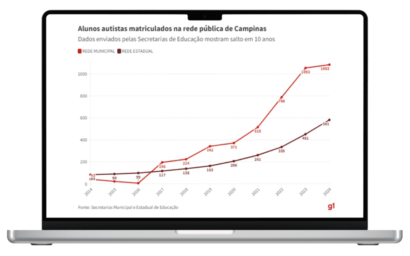 Na rede pública de Campinas, SP, pesquisadores identificaram que em 2014, eram apenas 43 crianças com autismo na rede municipal, mas 10 anos depois, chegou a 1.083.